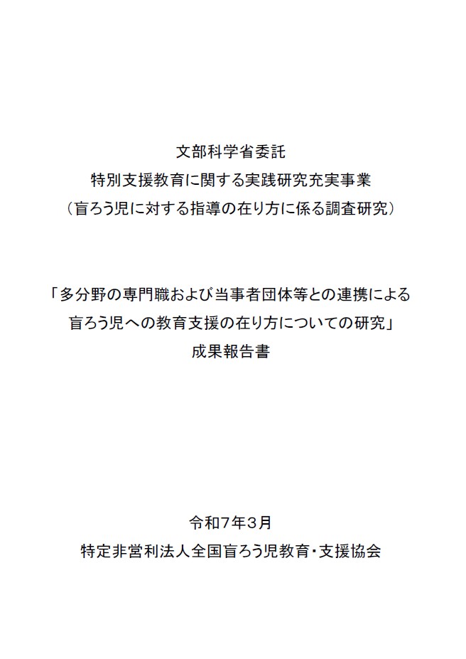 | 「多分野の専門職および当事者団体等との連携による 盲ろう児への教育支援の在り方についての研究」 成果報告書 |